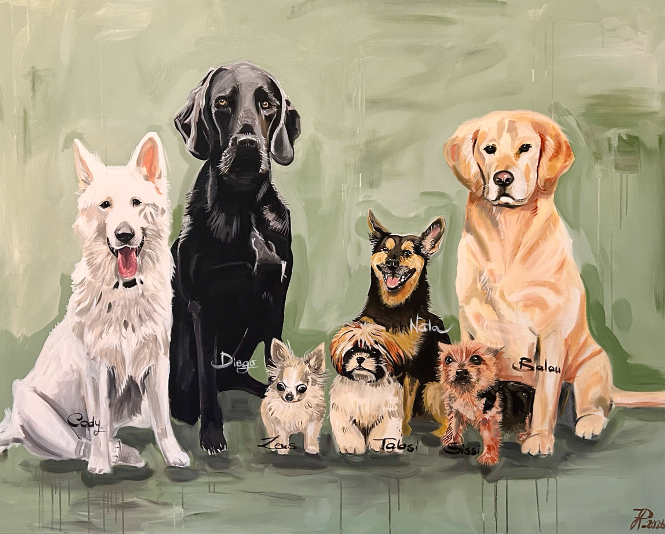 Markenkunst für Unternehmen und Seelenporträts für Tiermenschen – individuell gemalt, mit Persönlichkeit und Storytelling.